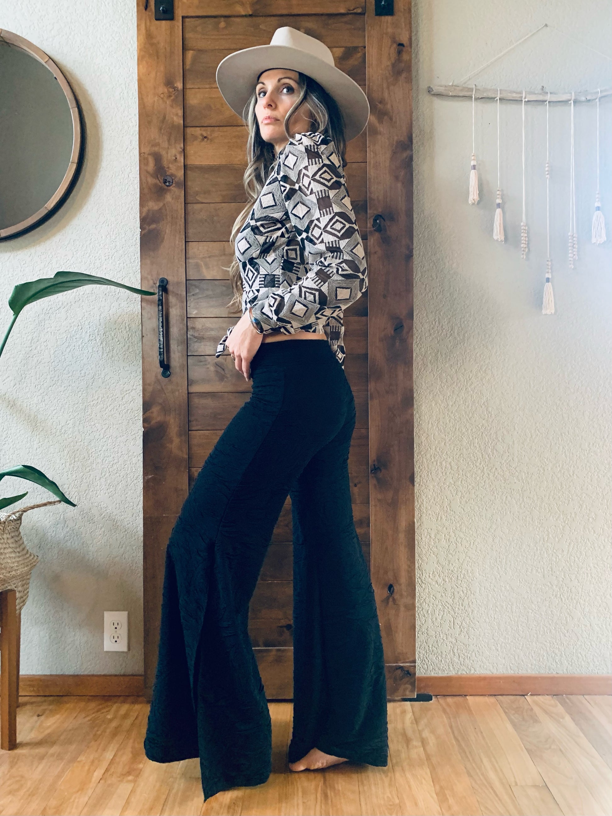 This beautiful flare pant is a great addition to your closet! The style and fabric is both elegant and comfortable and pairs with a simple tank as well as a fancy top. With these pants you are ready for any occasion! Comes with a slit up the side of the leg for extra movement or you can choose the same pant without the slit.