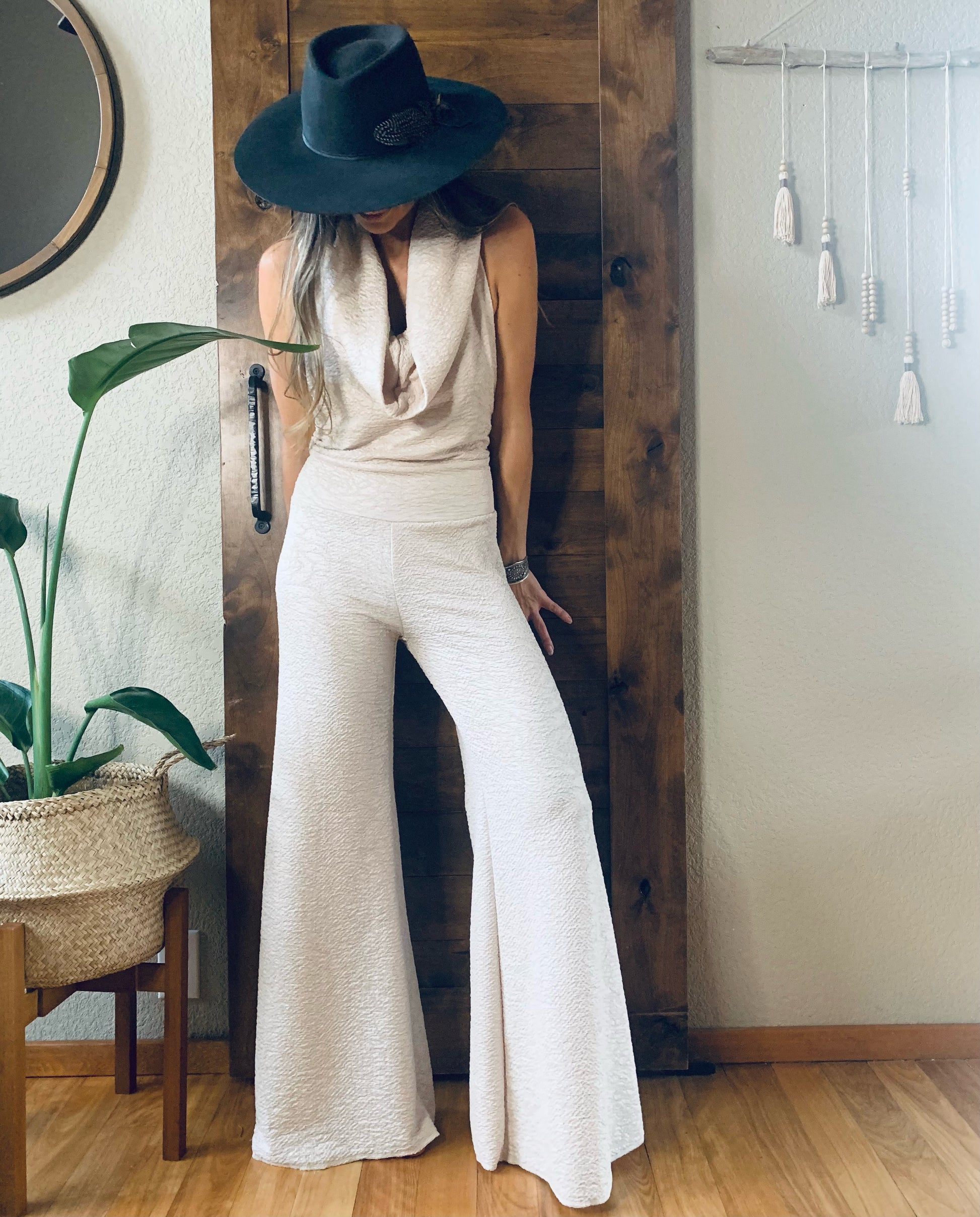 Introducing the ultimate blend of style and comfort: our cream crinkled cowl neck onesie. This fashion-forward piece features a chic cowl neck that doubles as a cozy hood, adding elegance and versatility. Crafted from luxurious four-way stretch fabric, it moves with you for unmatched comfort. The eye-catching slit at the leg adds a hint of allure and practicality, making it easier than ever to stay fashionable and functional. Whether you're dressing up for a night out or lounging in effortless style, this onesie is your new go-to for any occasion.