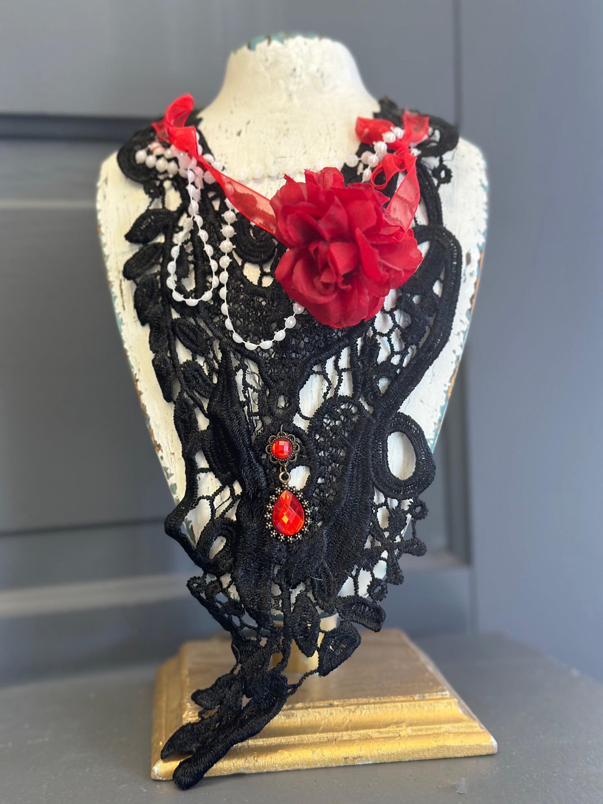 This dramatic collar necklace has it all. Give any outfit a makeover in seconds, weather you are wearing it with a dress to a gala event or with a tank top to a bar, you will look absolutely stunning with this piece around your neck.