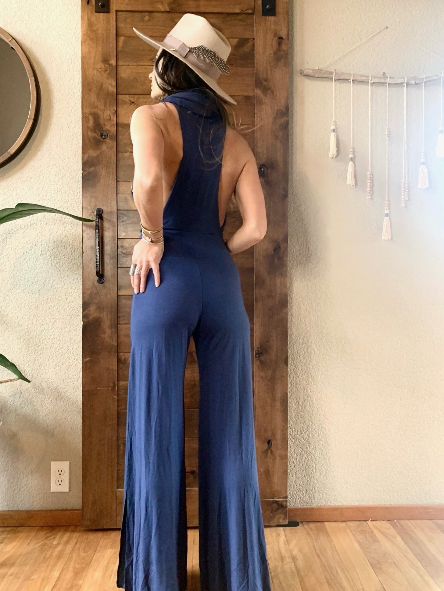 Elevate your wardrobe with our stunning cowl neck onesie in a beautiful royal blue soft fabric. The elegant cowl neck design effortlessly transforms into a chic hood, adding versatility to your look. With a luxurious four-way stretch, this onesie moves with you, ensuring a flawless fit. The daring slits up the legs not only make a bold fashion statement but also provide added convenience and mobility. Whether you're stepping out for a night on the town or enjoying a casual day out, this onesie is your ultimate go-to for any occasion.