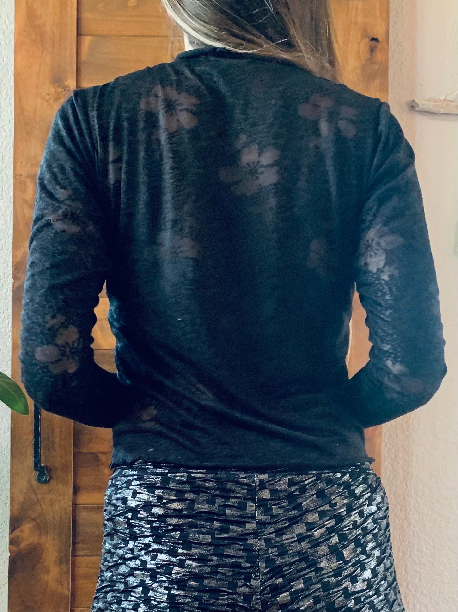 This light weight, floral top is sexy, elegant, and amazingly soft. Wear it anytime, wear with anything, pack it in your purse... This piece will quickly become your daily favorite.