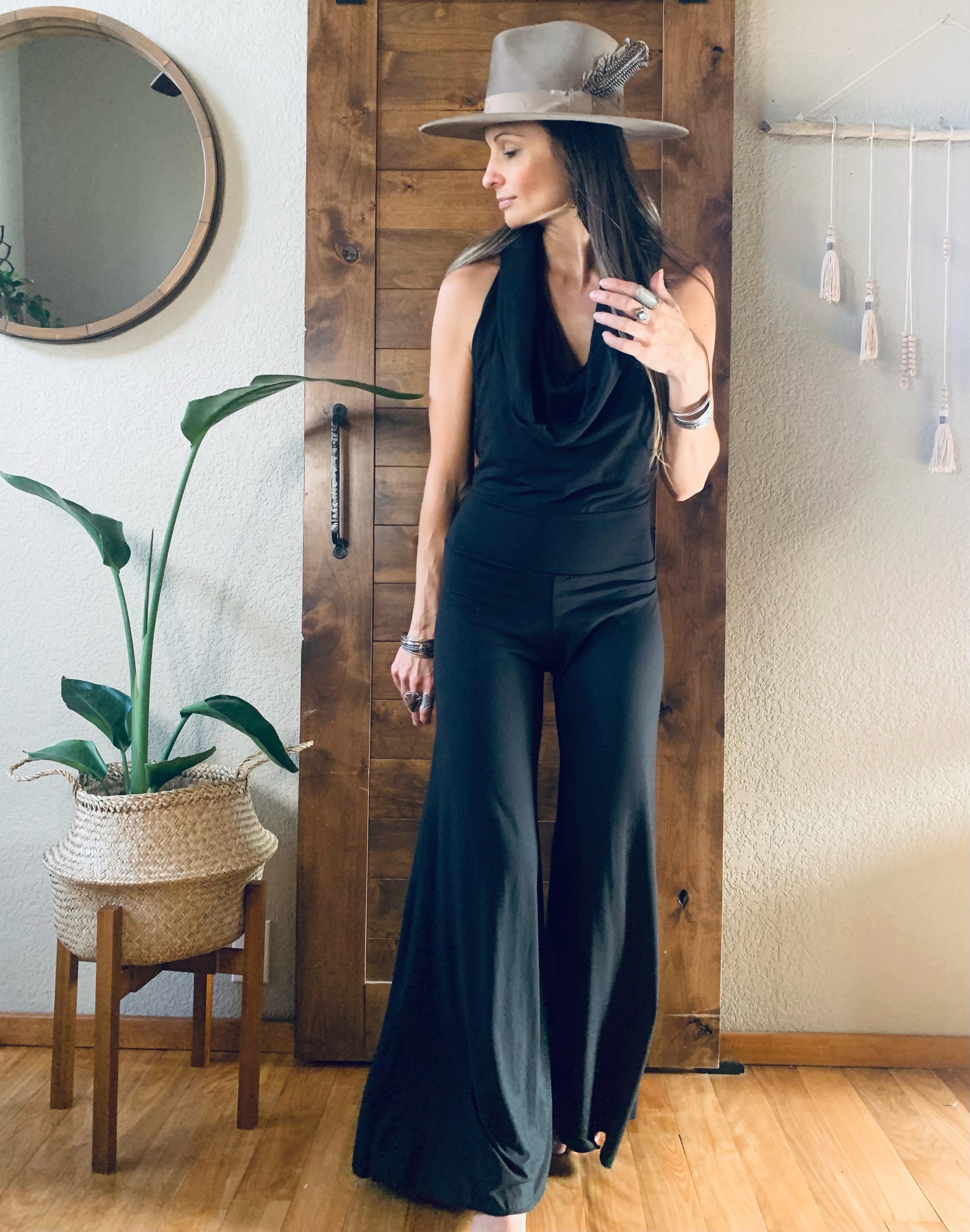 This beautiful onesie is made for comfort and style. The elegant cowl neck design effortlessly transforms into a chic hood, adding versatility to your look. With a luxurious four-way stretch, this onesie moves with you, ensuring a flawless fit. Whether you're stepping out for a night on the town or enjoying a casual day out, this onesie is your ultimate go-to for any occasion.